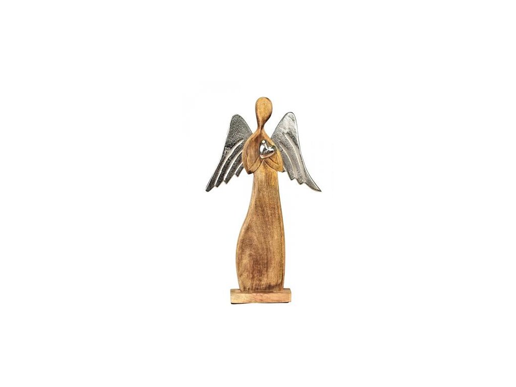 - Kombinace přírodního dřeva a třpytivých stříbrných křídel