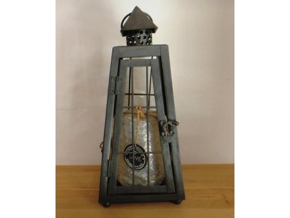 Výška cca. 30 cm Šířka cca. 14,5 x 14,5 cm Materiál dřevo, kov, sklo Barva stříšky zelená patina